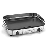 - Two independent side by side cooking surfaces with temperature range from keep warm to sear
